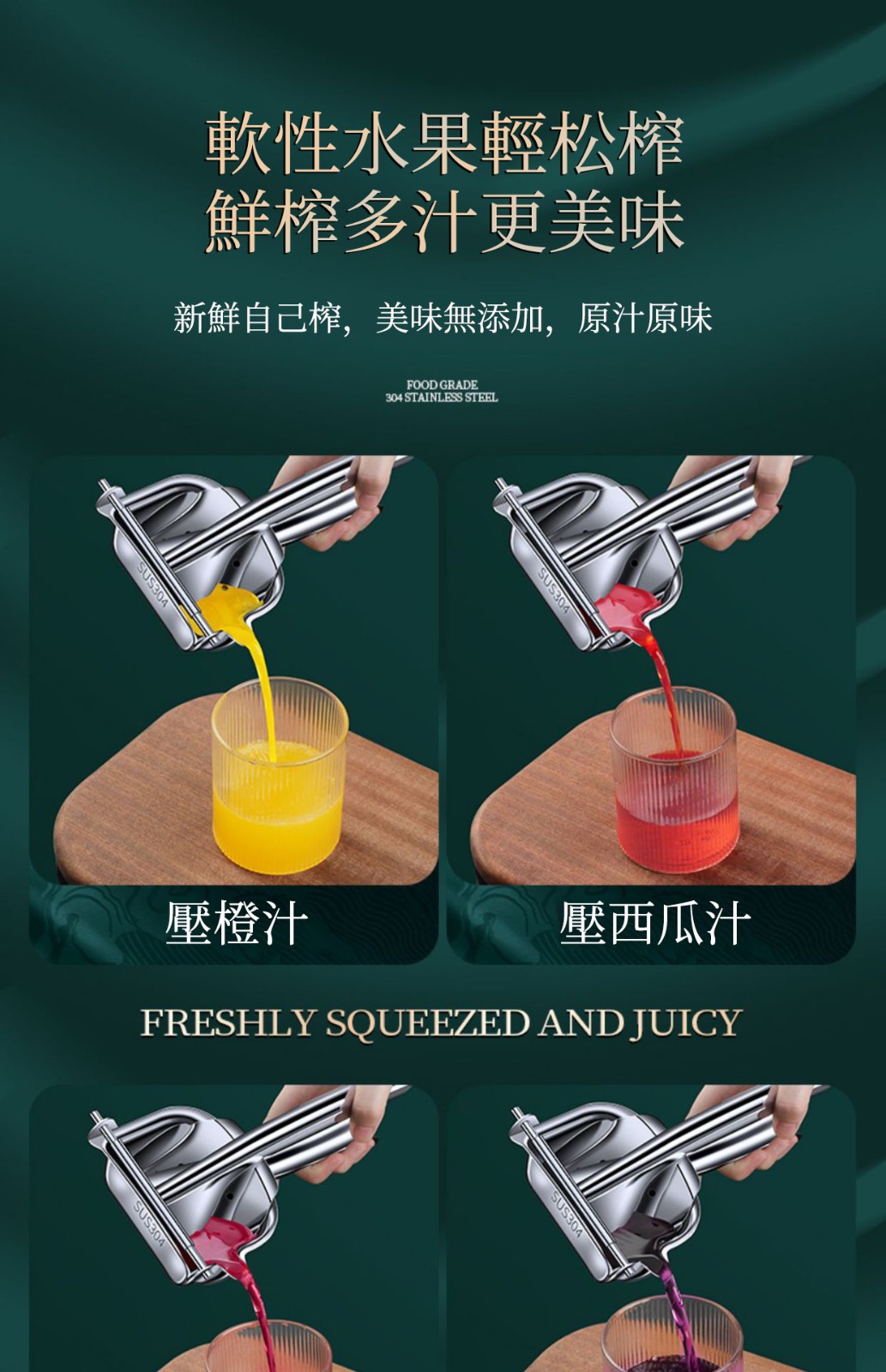 2分鐘前想喝鮮榨果汁宮又怕麻煩?304不鏽鋼手動榨汁汁來助力! 食品級材質安全耐用,鬆分離果渣與果汁,西瓜、石榴、柳丁随心榨!小巧便攜不佔地,手動按壓超解壓,新鮮健康零添加,讓你隨時隨地享原汁原味~ - 【限時下殺】買一送一 2入組NT$1298