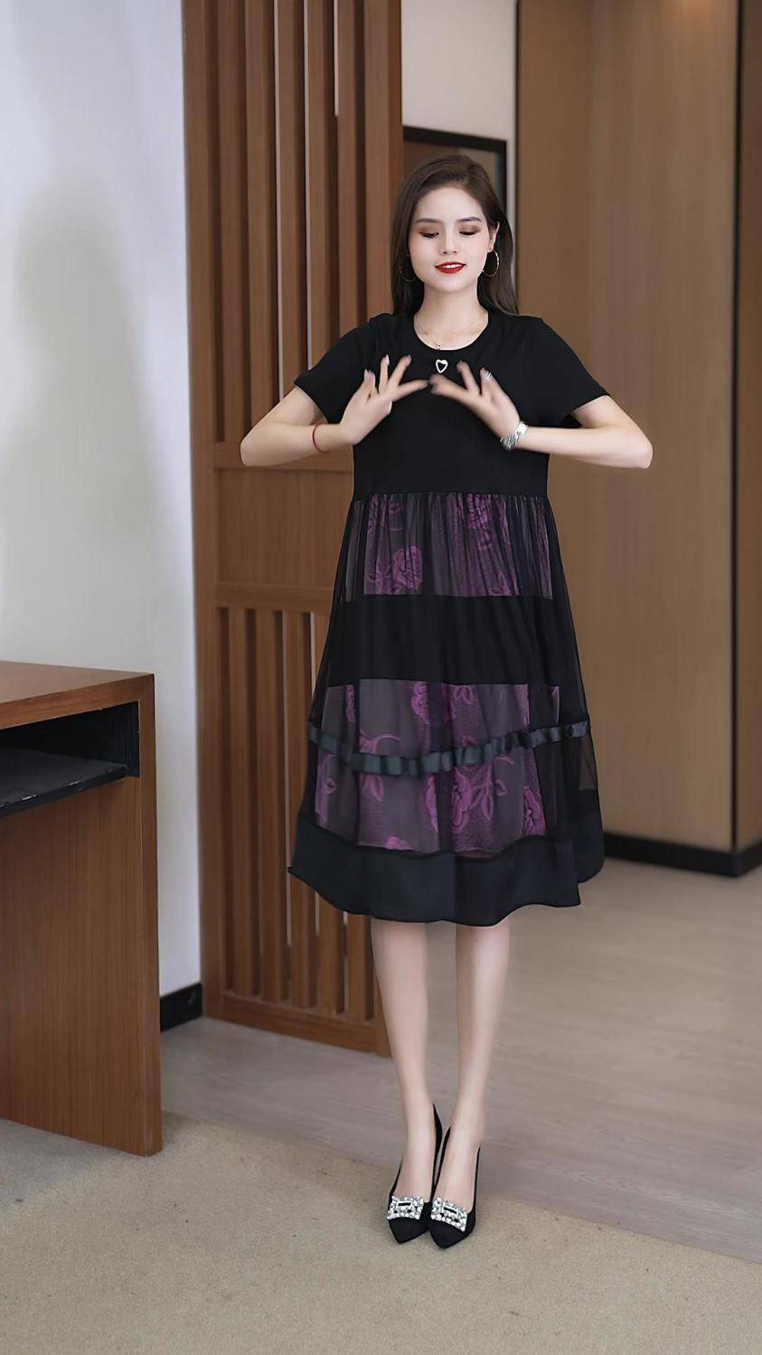 15分鐘前2025夏季新款時尚假兩件寬鬆遮肚網紗連衣裙 - 【尊享三入】僅需NT$1298(均價NT$432)