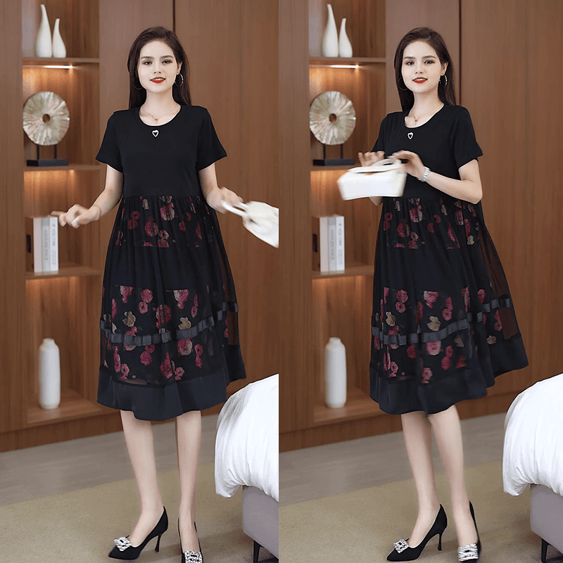 15分鐘前2025夏季新款時尚假兩件寬鬆遮肚網紗連衣裙 - 【限時特惠】僅需NT$980