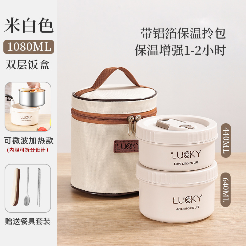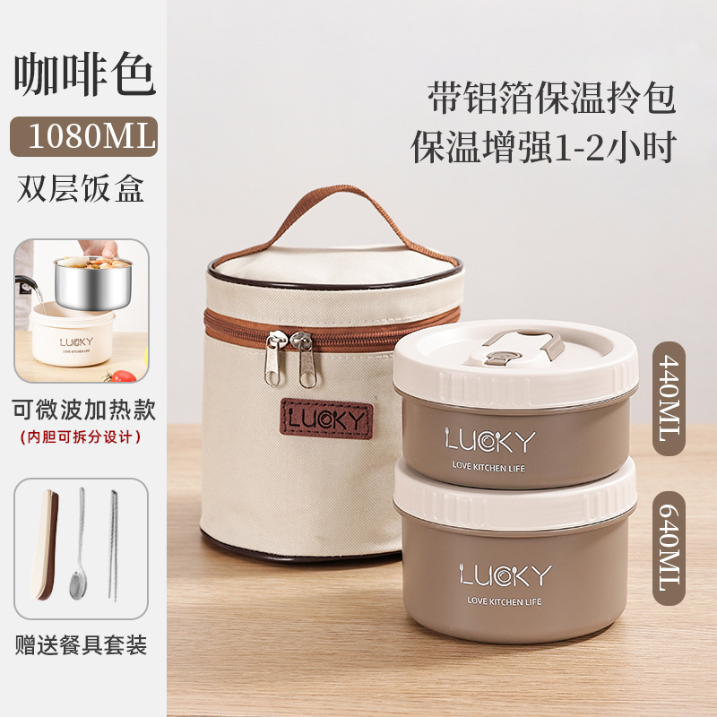 4分鐘前日式便攜保溫飯盒送餐具套餐 - 不可微波【兩個裝】+勺筷+保溫提包NT$799