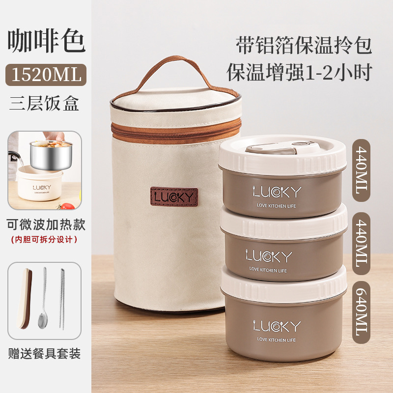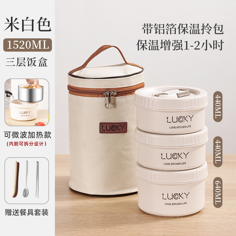 2分鐘前日式便攜保溫飯盒送餐具套餐 - 可微波【三個裝】+勺筷+保溫提包NT$1260