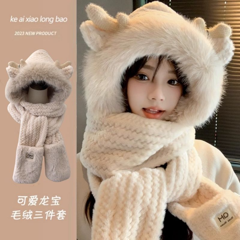 25分鐘前【熱銷免運】新款可愛帽子圍巾一體女冬季連帽圍脖加厚保暖毛絨三件套騎車 毛線帽 針織帽 毛帽 小熊造型 可愛毛帽 - 【今日限定】體驗一入組$799