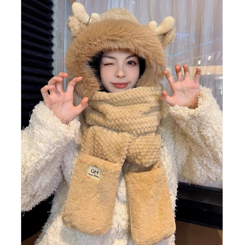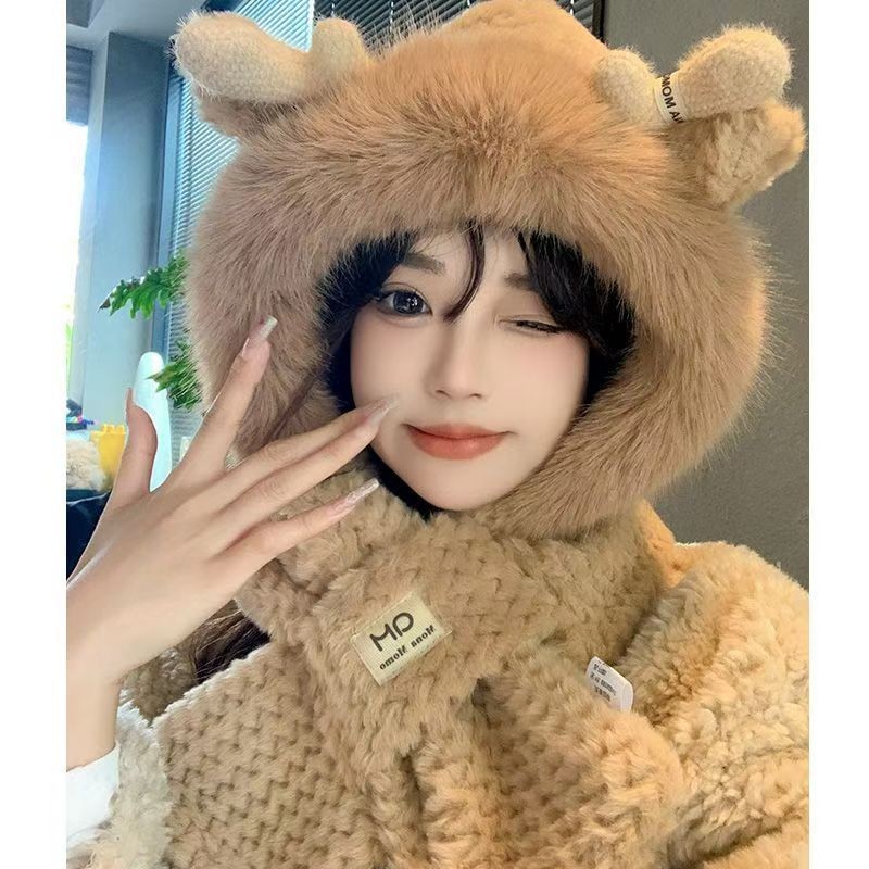 15分鐘前【熱銷免運】新款可愛帽子圍巾一體女冬季連帽圍脖加厚保暖毛絨三件套騎車 毛線帽 針織帽 毛帽 小熊造型 可愛毛帽 - 【超夯活動】閨蜜兩入組$1099