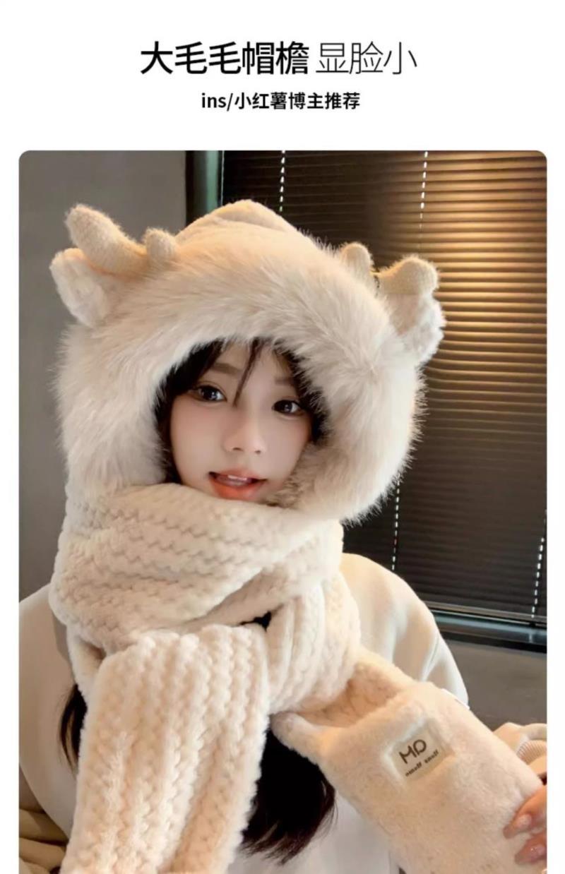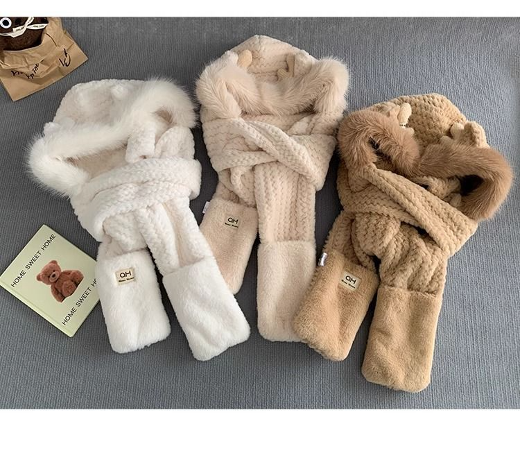 25分鐘前【熱銷免運】新款可愛帽子圍巾一體女冬季連帽圍脖加厚保暖毛絨三件套騎車 毛線帽 針織帽 毛帽 小熊造型 可愛毛帽 - 【超夯活動】閨蜜兩入組$1099