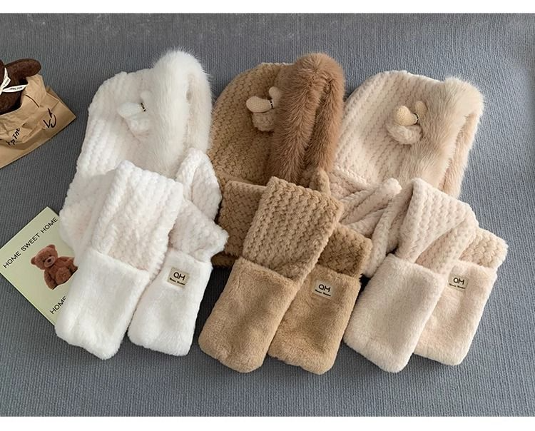 4分鐘前【熱銷免運】新款可愛帽子圍巾一體女冬季連帽圍脖加厚保暖毛絨三件套騎車 毛線帽 針織帽 毛帽 小熊造型 可愛毛帽 - 【狂殺特賣】團購三入組$1399