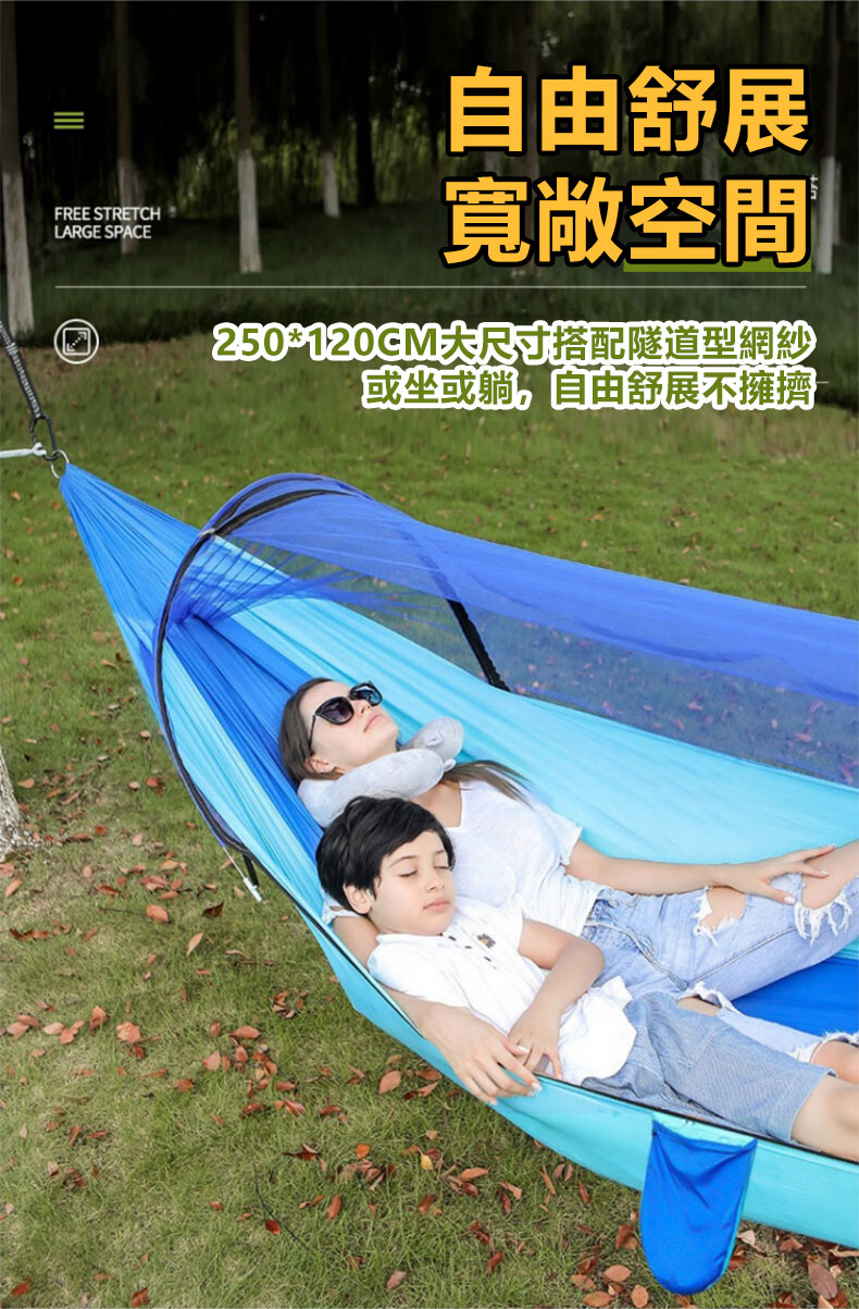 2分鐘前全自動速開戶外帶蚊帳吊床 - 【創意嘗鮮】承重700公斤 速開蚊帳吊床【帶蚊帳 三米綁繩 8號扣】/1入組NT$1298