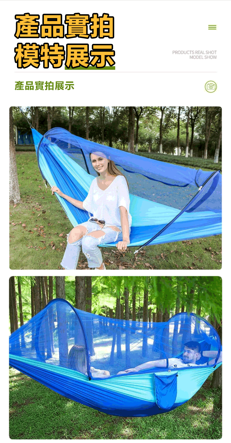 2分鐘前全自動速開戶外帶蚊帳吊床 - 【限時下殺】承重700公斤 速開蚊帳吊床【帶蚊帳 三米綁繩 8號扣】/2入組NT$2098