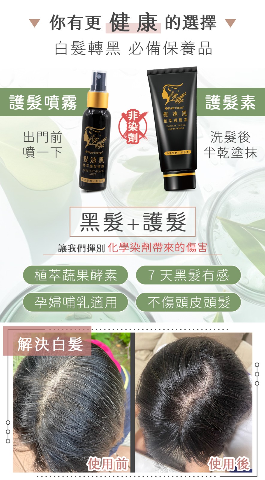 12分鐘前買一送一【日本熱銷】你有白髮煩惱嗎?快來試試一噴一抹就黑髮 全新第五代髪速黑 植萃護髮素噴霧+植萃護髮素 - 【限量專賣】買一送一·2入組-NT$999 【植萃護髮噴霧+植萃護髮素】