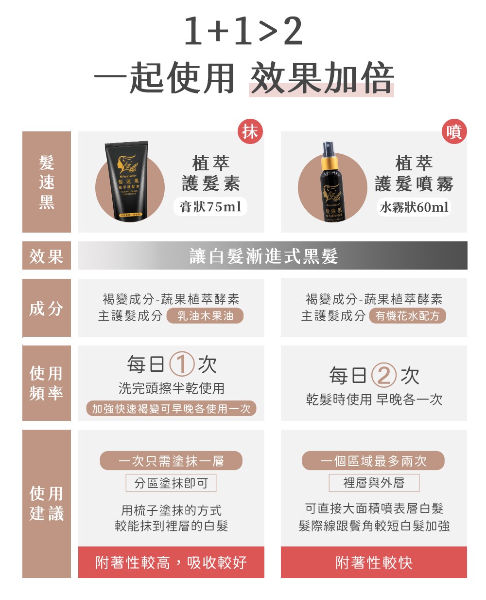 20分鐘前買一送一【日本熱銷】你有白髮煩惱嗎?快來試試一噴一抹就黑髮 全新第五代髪速黑 植萃護髮素噴霧+植萃護髮素 - 【限量專賣】買一送一·2入組-NT$999 【植萃護髮噴霧+植萃護髮素】