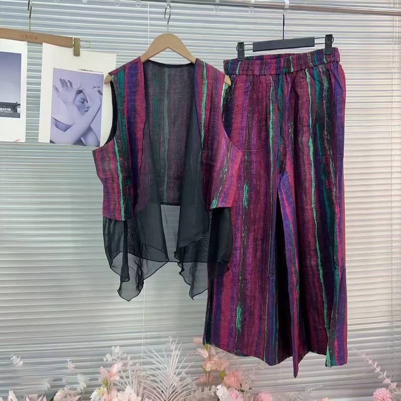 20分鐘前居然這麼顯瘦!色彩感十足的氣質馬甲套裝也太美了吧,假兩件馬甲搭配條紋寬褲,妥妥的慵懶感~ - 【限時下殺】馬甲+褲子一套 僅需 NT$998