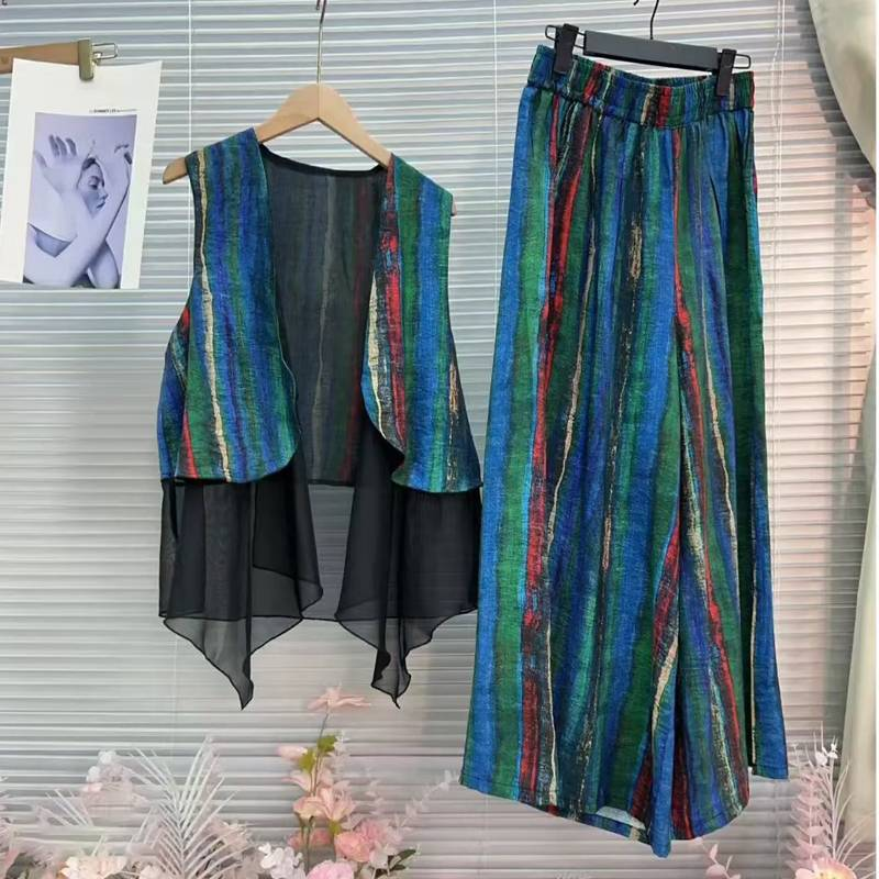 15分鐘前居然這麼顯瘦!色彩感十足的氣質馬甲套裝也太美了吧,假兩件馬甲搭配條紋寬褲,妥妥的慵懶感~ - 【限時下殺】馬甲+褲子一套 僅需 NT$998