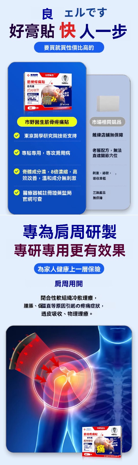 25分鐘前市野醫生緩解關節疼痛肩周貼,多種原材合理搭配製成,柔軟貼合,長時貼敷、深入肌膚呵護,早用早好。 - 【三療程 行走順暢不再疼痛】買三送四-NT$1400
