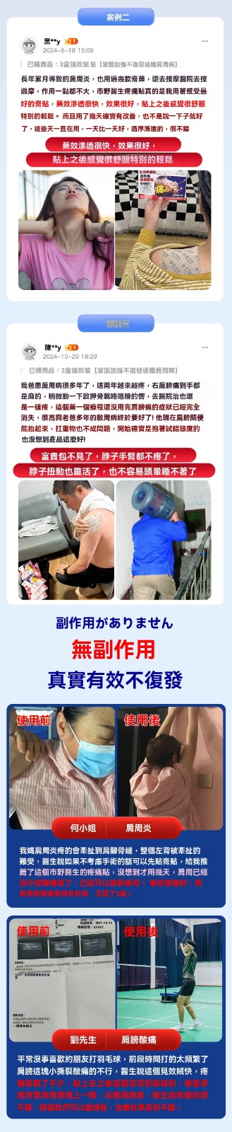 7分鐘前市野醫生緩解關節疼痛肩周貼,多種原材合理搭配製成,柔軟貼合,長時貼敷、深入肌膚呵護,早用早好。 - 【二療程 治療腿疼肩胛疼】買二送三-NT$1200
