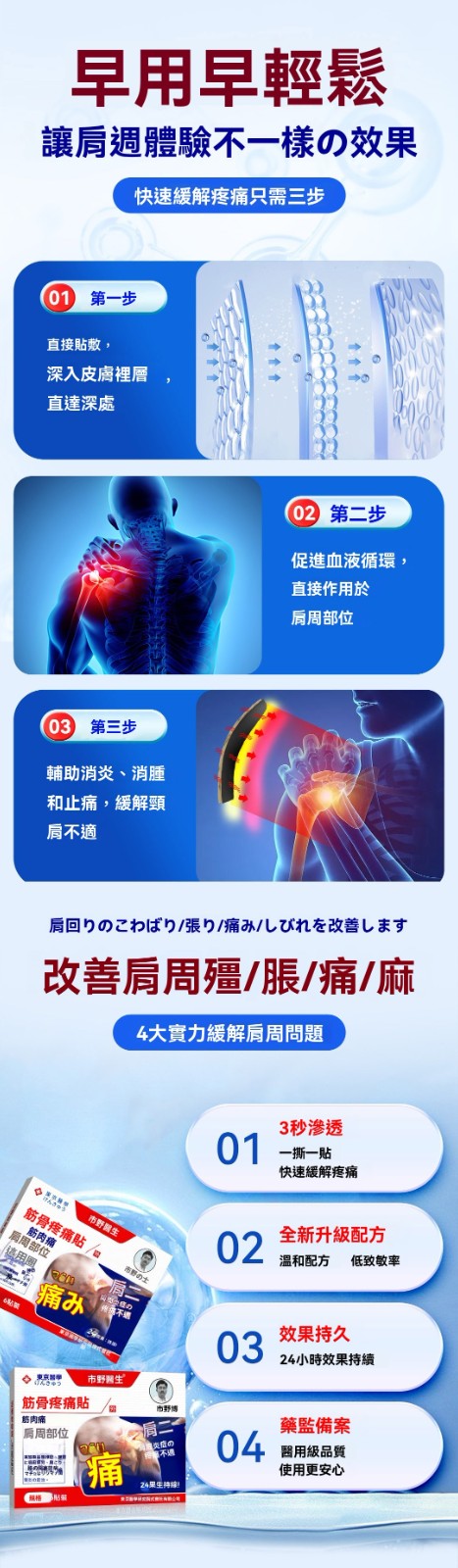 5分鐘前市野醫生緩解關節疼痛肩周貼,多種原材合理搭配製成,柔軟貼合,長時貼敷、深入肌膚呵護,早用早好。 - 【三療程 行走順暢不再疼痛】買三送四-NT$1400