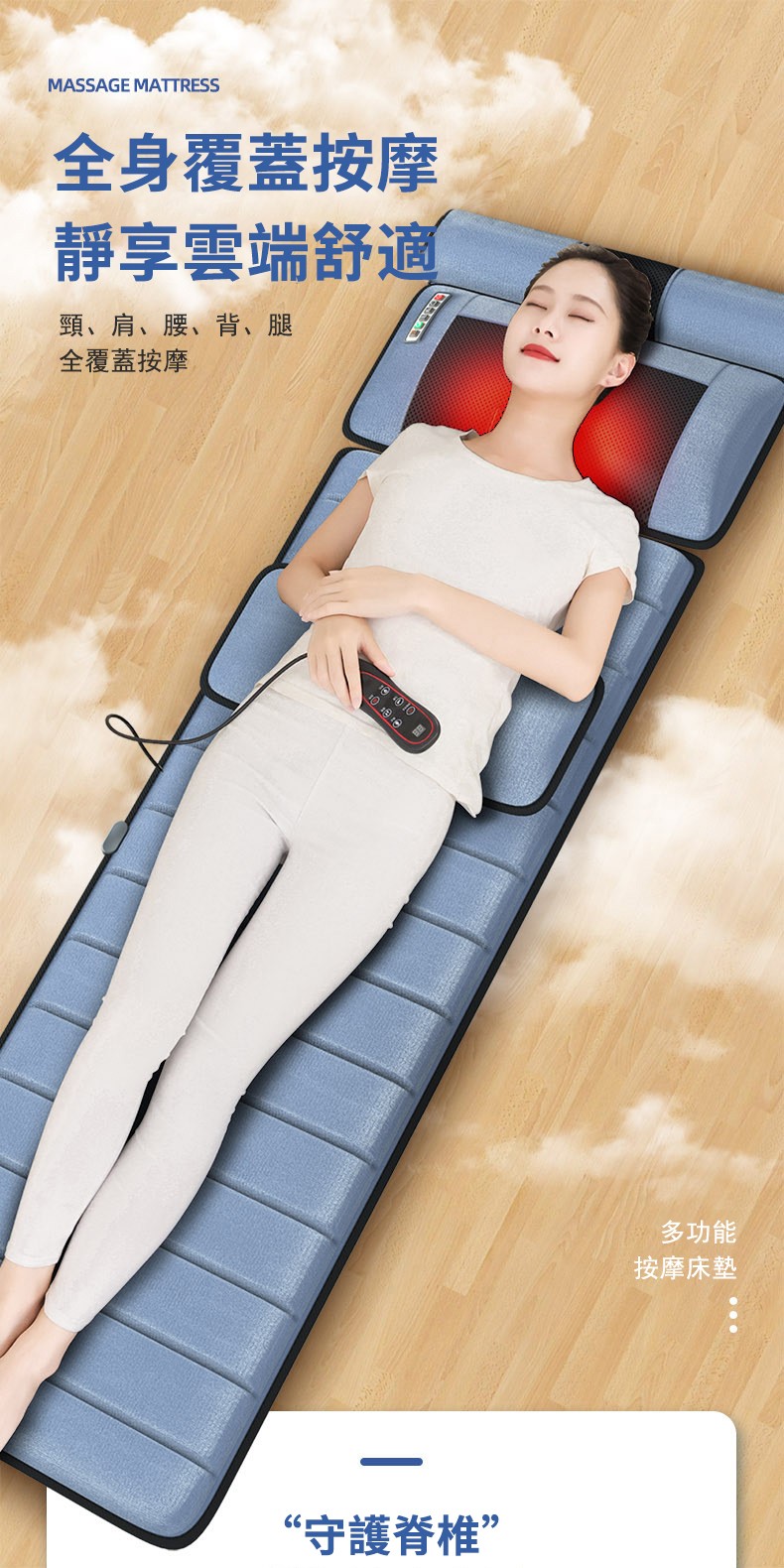 5分鐘前多功能全身按摩床墊 | 電動加熱頸椎、腰部、背部、腿部全方位按摩器,舒緩身心疲勞 - 6鍵旗艦款(6鍵揉捏+震動+氣囊+10電機+腰部熱敷)