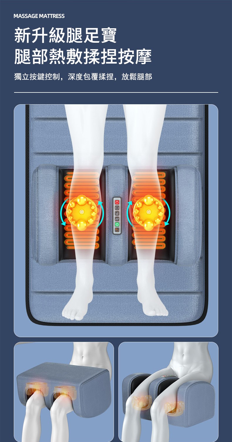 15分鐘前多功能全身按摩床墊 | 電動加熱頸椎、腰部、背部、腿部全方位按摩器,舒緩身心疲勞 - 豪華皮質款五合一可拆卸(藥枕+頸部滾輪+震動加熱+【腿部加熱揉捏】)