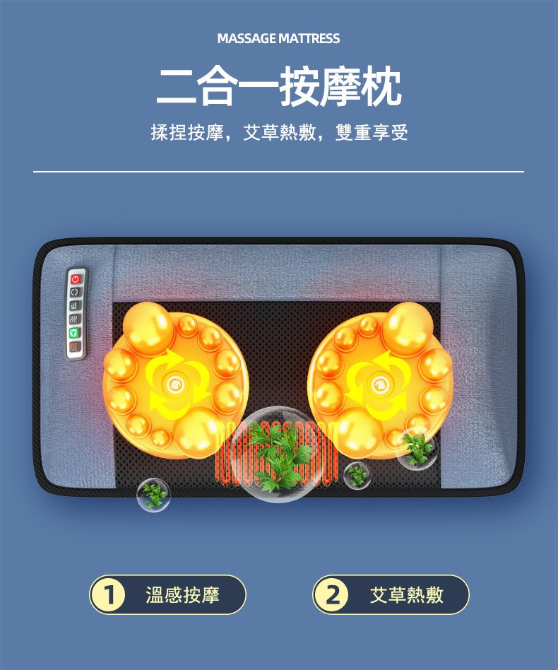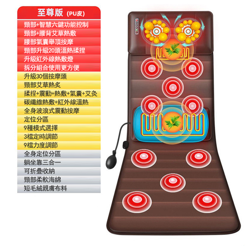 7分鐘前多功能全身按摩床墊 | 電動加熱頸椎、腰部、背部、腿部全方位按摩器,舒緩身心疲勞 - 豪華皮質款五合一可拆卸(藥枕+頸部滾輪+震動加熱+【腿部加熱揉捏】)