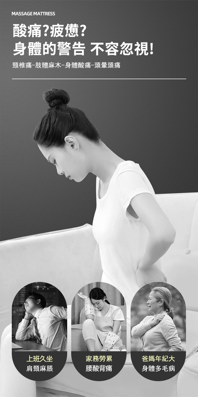 11分鐘前多功能全身按摩床墊 | 電動加熱頸椎、腰部、背部、腿部全方位按摩器,舒緩身心疲勞 - 6鍵旗艦款(6鍵揉捏+震動+氣囊+10電機+腰部熱敷)