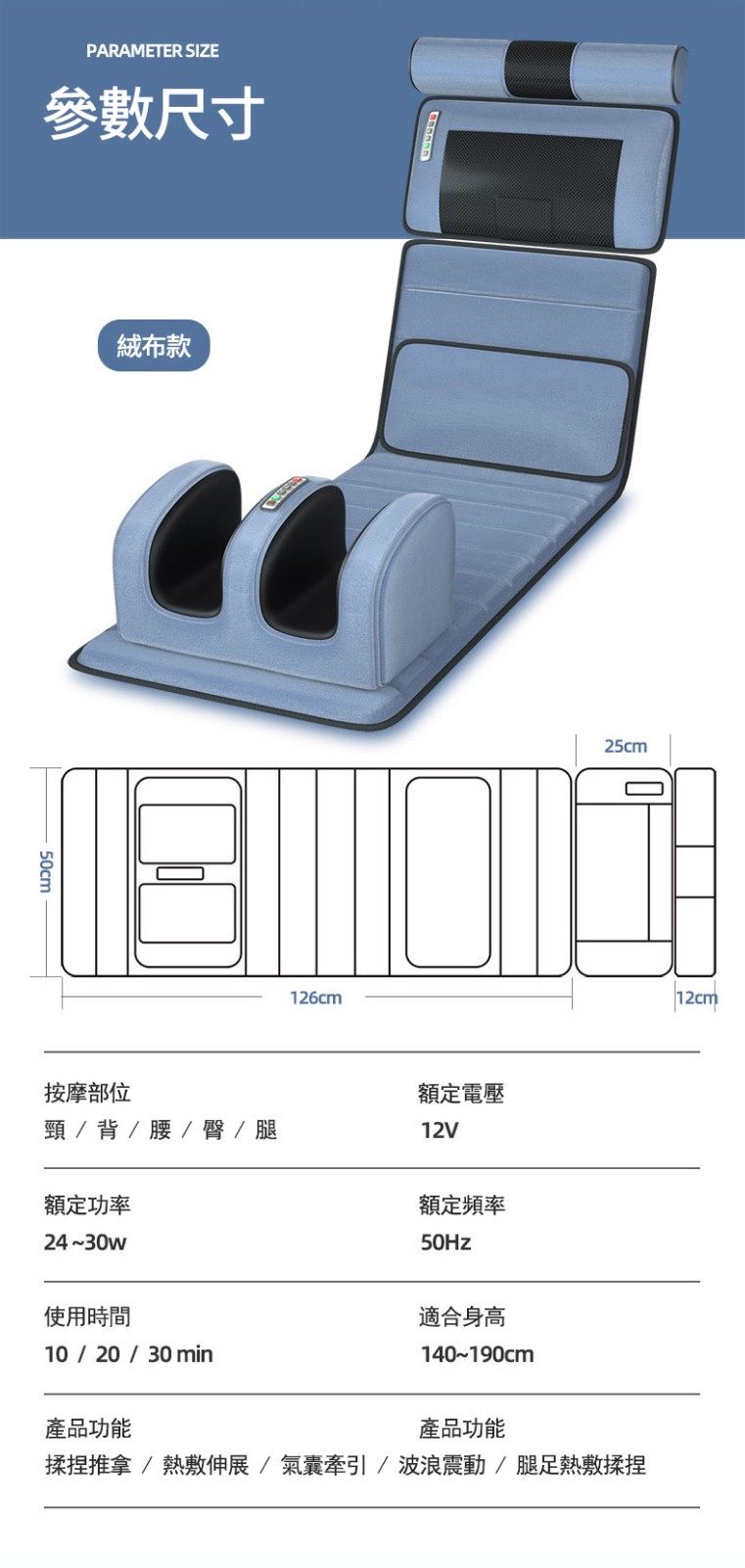 5分鐘前多功能全身按摩床墊 | 電動加熱頸椎、腰部、背部、腿部全方位按摩器,舒緩身心疲勞 - 豪華皮質款五合一可拆卸(藥枕+頸部滾輪+震動加熱+【腿部加熱揉捏】)
