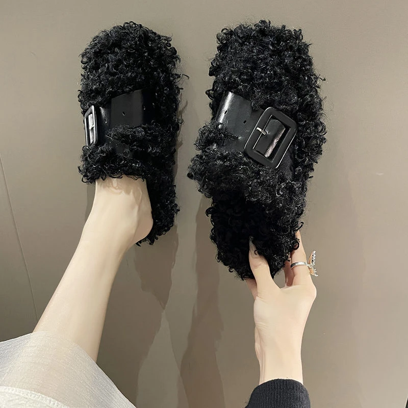 7分鐘前2024秋冬新款厚底羊毛卷拖鞋女外穿百搭室內外懶人包頭棉拖鞋 - 單買一件NT$999