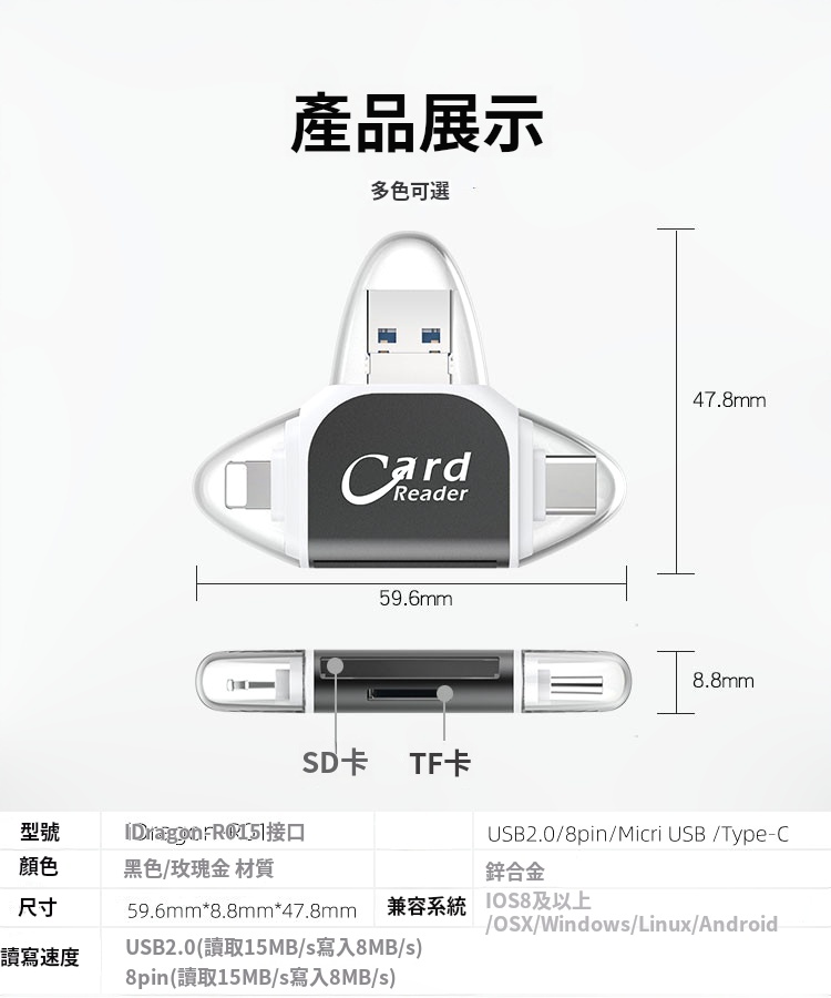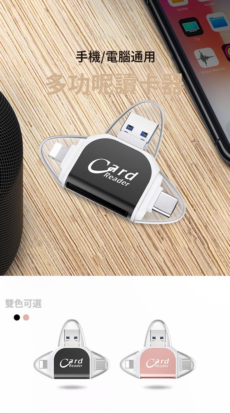 15分鐘前多功能讀卡器適用於蘋果安卓手機 - 【優惠價】四合一多功能讀卡機 一入組 NT$788