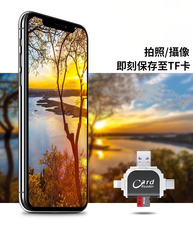 5分鐘前多功能讀卡器適用於蘋果安卓手機 - 【優惠價】四合一多功能讀卡機 一入組 NT$788