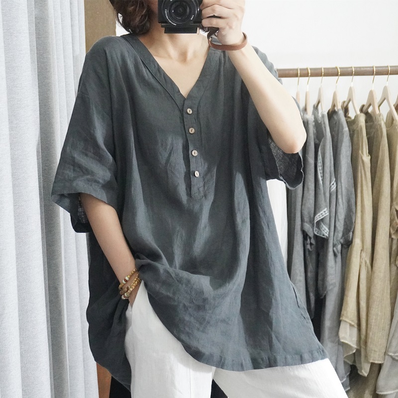 15分鐘前【買一送一】時尚寬鬆純棉文藝復古半袖上衣~遮肉顯瘦,舒適材質,柔軟親膚透氣,適合當季! - 精選三入 均價422/件!三色全入! NT$ 1268