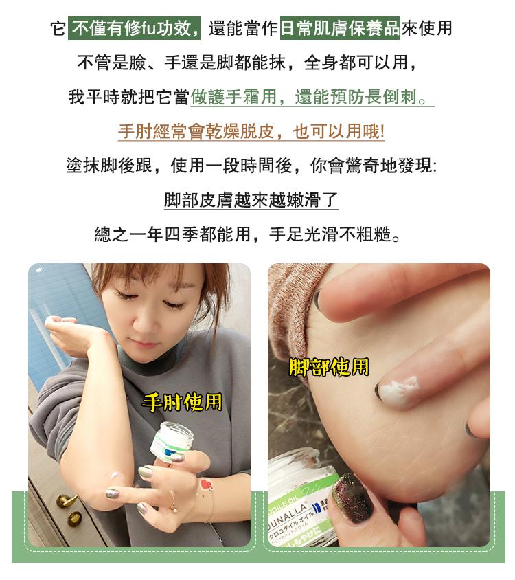 20分鐘前【秋冬保濕套裝】日本DUNALLA鱷魚油滋潤護理霜 修復手足 防乾裂 解決皮膚乾燥粗糙 幹癢隱痛的問題 讓肌膚滋潤保濕 清爽不油 - 【加100塊】3組手膜+3組腳膜+1組DUNALLA鱷魚油 僅需--NT$ 1098