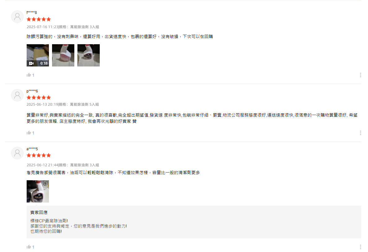 4分鐘前【夜市人生清潔劑】-(夜市人生水垢還原劑)適合各處殘留水垢,只清水垢,不傷手/不刺鼻,只要有水垢的地方通通清的起來!【夜市人生萬能除油劑】廚房救星!❗油污秒殺❗ 噴後10秒擦淨|網友狂推|頑固油漬剋星|輕鬆分解重油污 - 台灣製【夜市人生萬能除油劑】好用不傷手 買三送三 6組分享裝NT$1380(單瓶NT$230)
