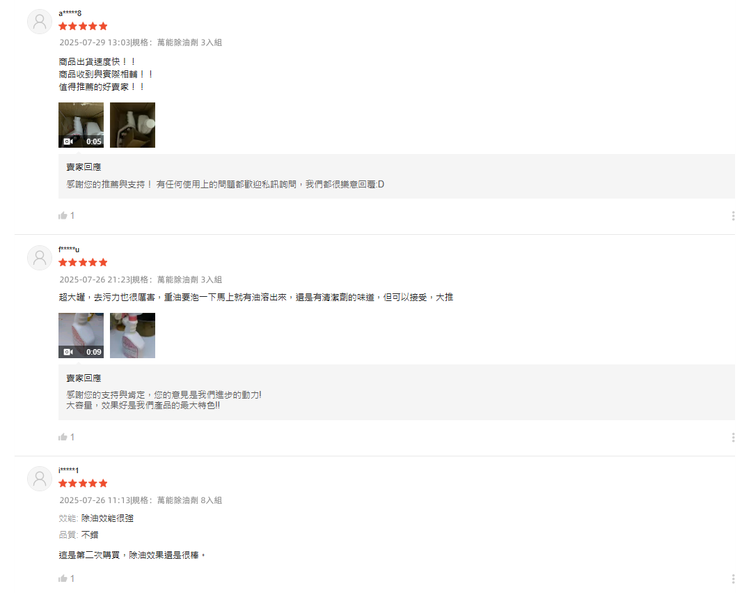 2分鐘前【夜市人生清潔劑】-(夜市人生水垢還原劑)適合各處殘留水垢,只清水垢,不傷手/不刺鼻,只要有水垢的地方通通清的起來!【夜市人生萬能除油劑】廚房救星!❗油污秒殺❗ 噴後10秒擦淨|網友狂推|頑固油漬剋星|輕鬆分解重油污 - 台灣製【夜市人生萬能除油劑】頑固油漬剋星 買四送四 8組囤貨組NT$1580(單瓶NT$197)