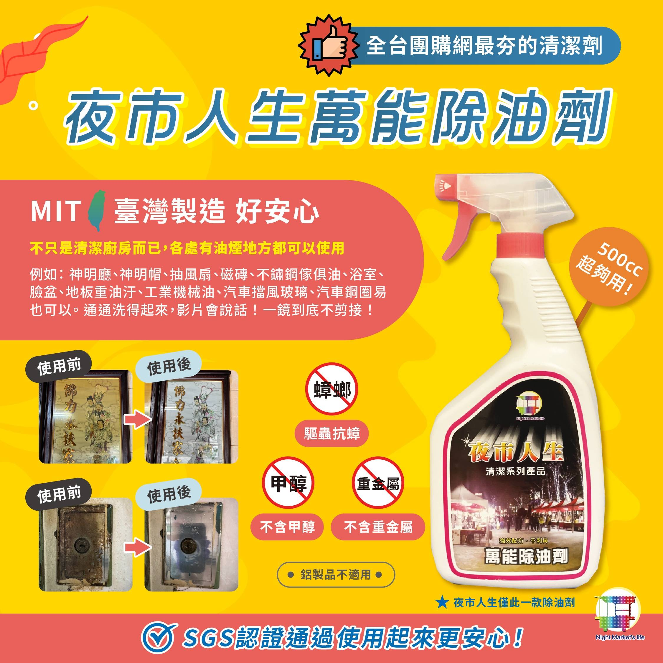 5分鐘前台灣製【夜市人生萬能除油劑】好用不傷手 買三送三 6組分享裝NT$1380(單瓶NT$230)