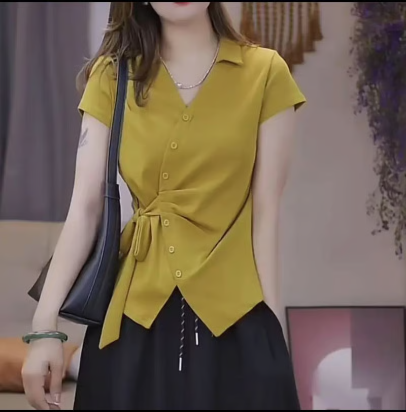15分鐘前夏季新款重工不規則設計短袖時尚綁帶V領T恤女修身顯瘦上衣女 - 【均價699】到手2件-NT$1399
