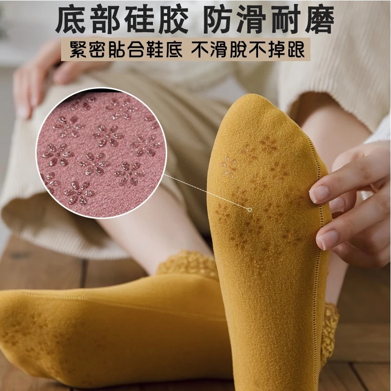 7分鐘前優雅蕾絲花邊設計,絨面厚棉,柔軟有韌性,穿上超舒適 矽膠防滑設計,舒適不咯腳 拉伸設計,適合各種腳碼大小 - NT$770五雙(顏色隨機),每雙均價NT$154