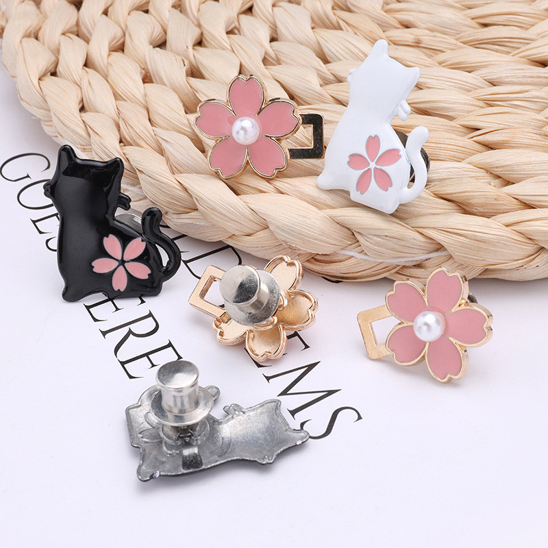 5分鐘前櫻花貓收腰扣 牛仔褲免縫免釘收腰扣 金屬扣 可拆卸鈕扣 褲子腰圍大改小收腰神器 合金固定扣 調節扣 - 折扣價6入組999