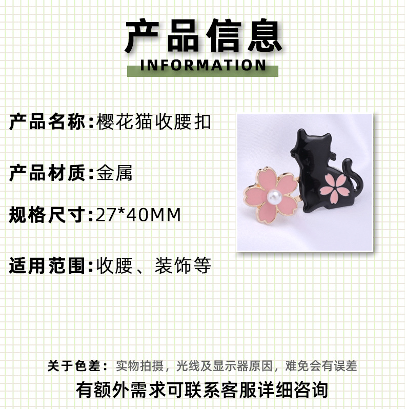 5分鐘前櫻花貓收腰扣 牛仔褲免縫免釘收腰扣 金屬扣 可拆卸鈕扣 褲子腰圍大改小收腰神器 合金固定扣 調節扣 - 優惠價3入組799