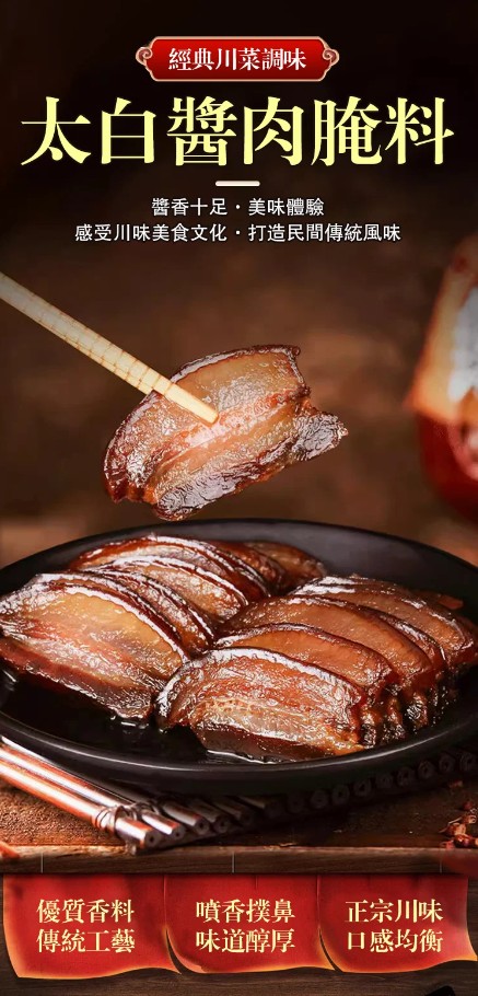 20分鐘前【一袋做6斤】太白醬肉醃料廚師兄川味風乾臘肉料300g/袋醬排骨猪肝 - 超夯下殺【太白醬肉醃料 300g/袋】10入組NT$1680(均價168/入)