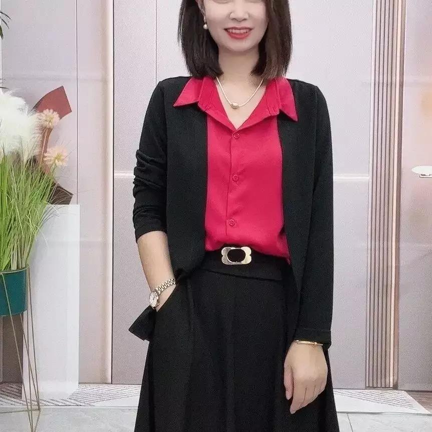 4分鐘前2022年新款秋裝拼接假兩件套開衫長袖拼接純色翻領氣質流行襯衫 - 超值套餐【四入組】NT$1099